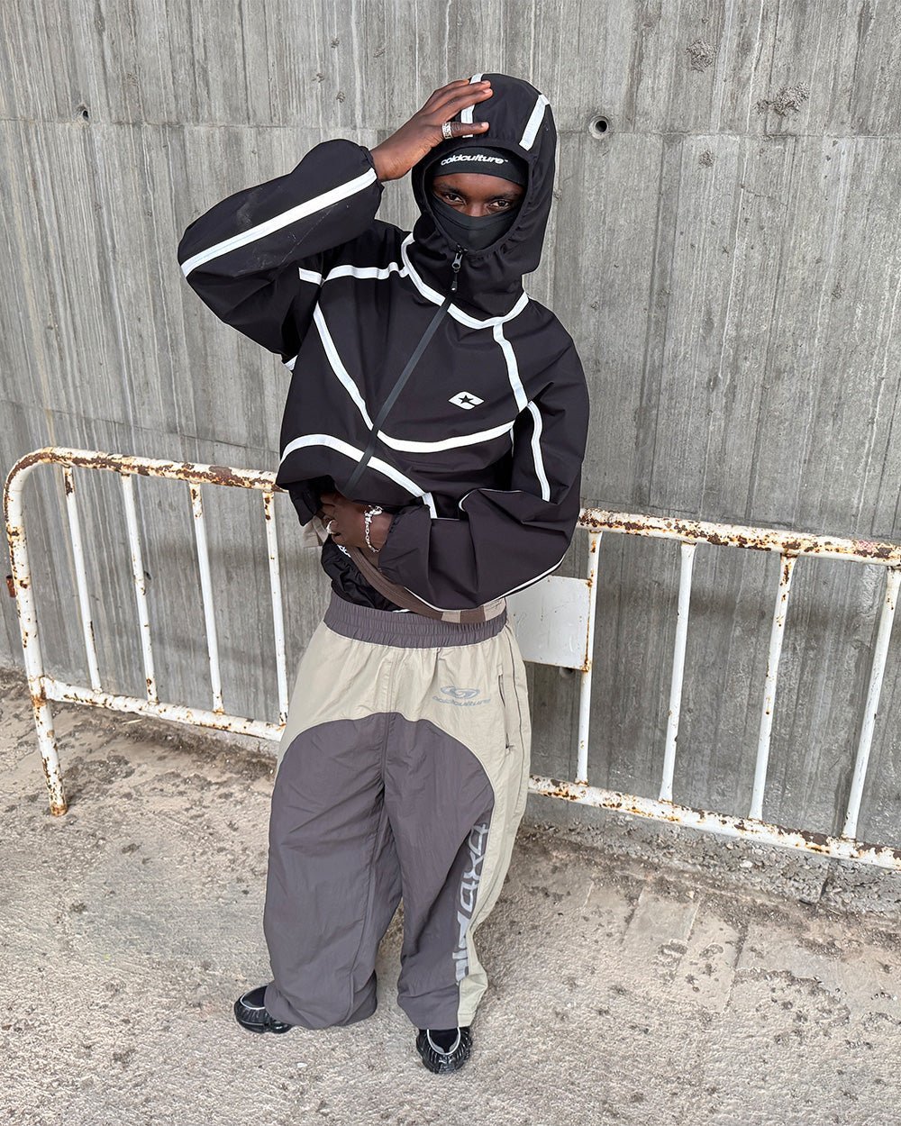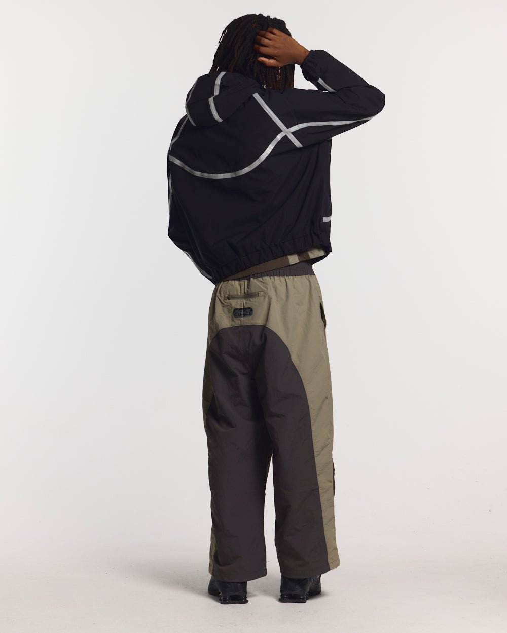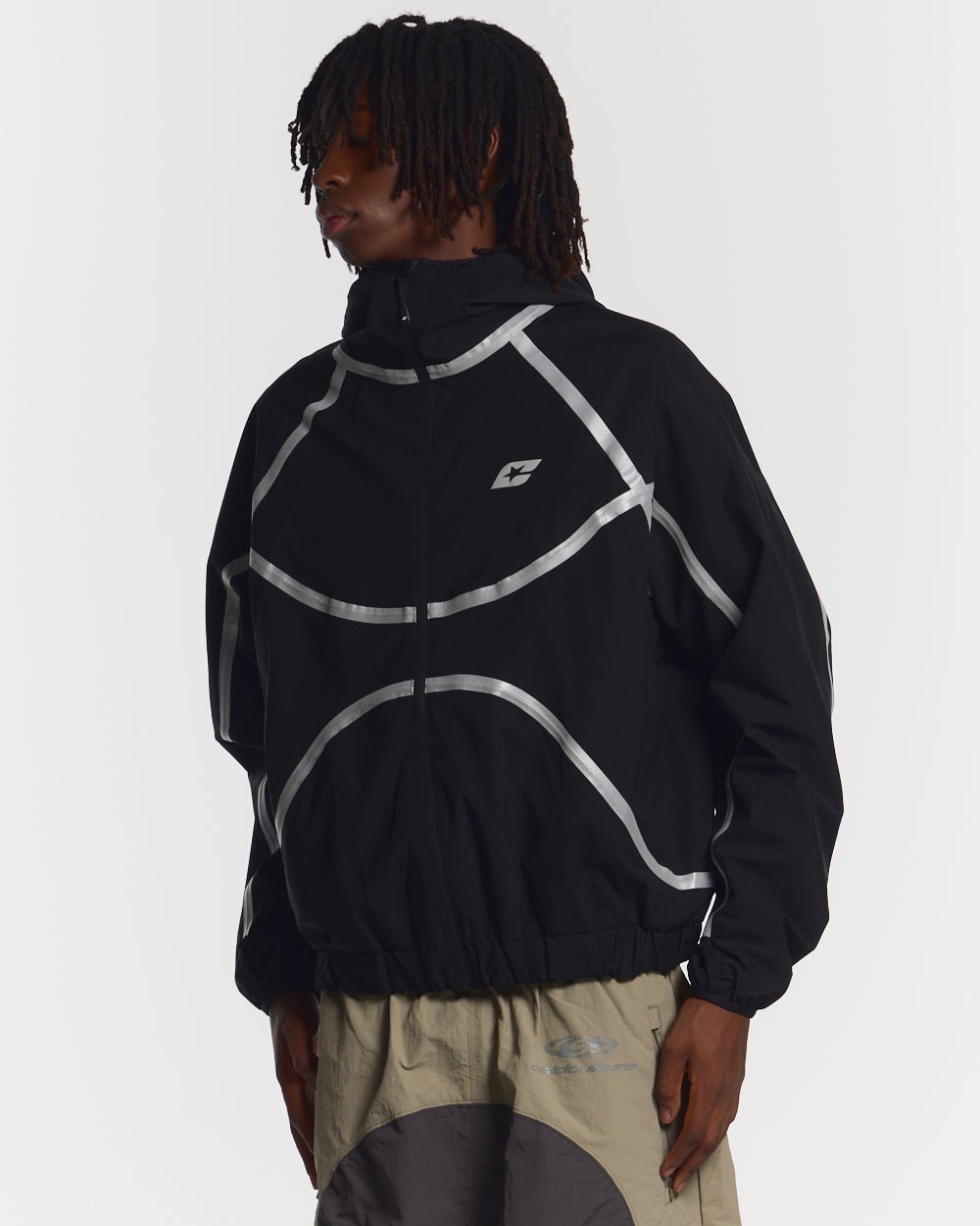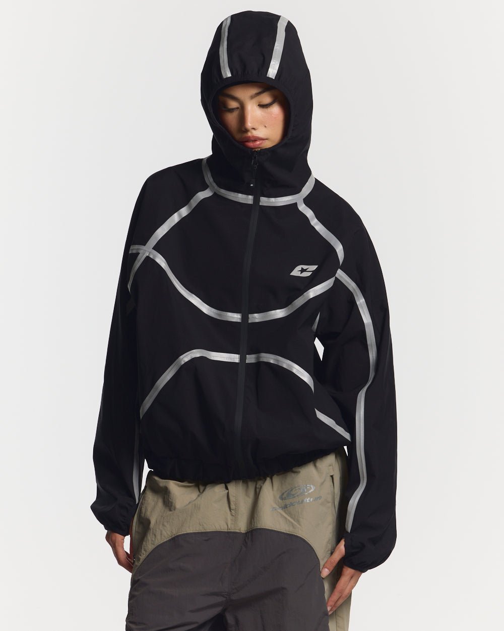 Oversized boxy fit hooded jacket.